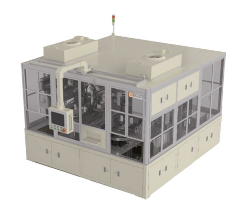 正負(fù)極彈夾上料 ,通過取片疊片機(jī)械手 、 糾偏平臺 、疊片臺 、隔膜放卷間隔交替堆 疊 成 電 芯 ,經(jīng) 過 相 機(jī) 對 齊 度 檢 測 、下 線 、 尾 卷 、貼 膠 、熱 壓 、短 路 測 試 等 ,N G 電 芯 排廢 ,OK電芯流入后道 。
