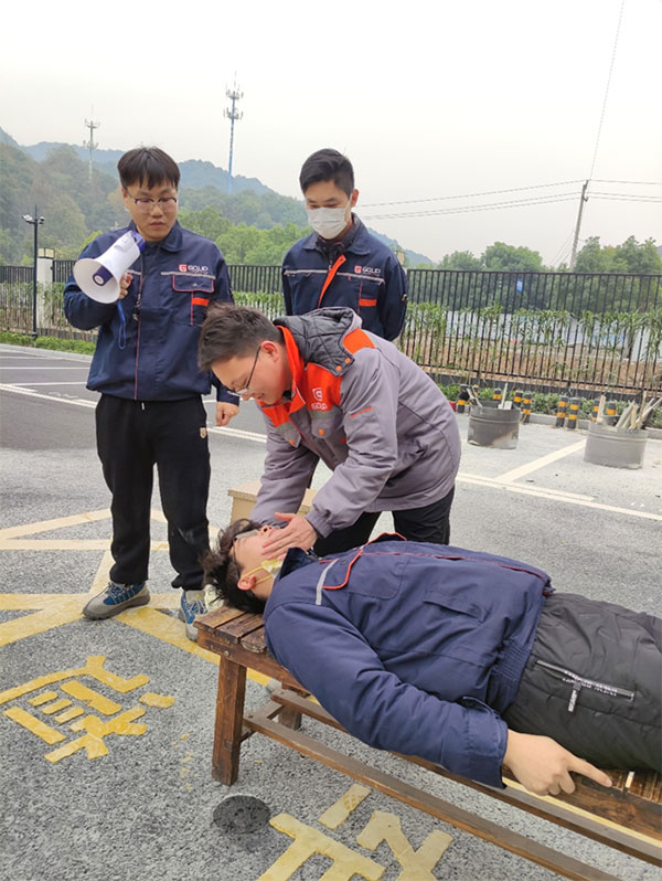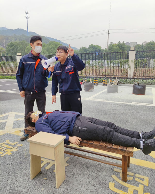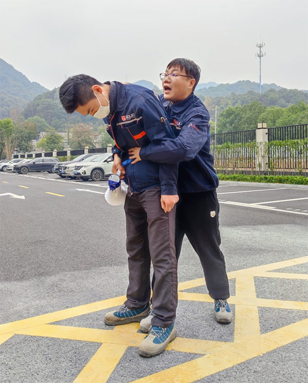 滅火器使用完畢后,安全員組織現(xiàn)場教學海姆立克急救法和胸外按壓、人工呼吸急救法。通過現(xiàn)場指導、錯誤示范、正確示范等多種方式相結(jié)合的手法,使抽象的平安演練變成具體的實戰(zhàn)演習,大大增強了全體員工的平安意識和自護自救技能。