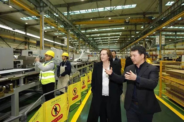 奧的斯全球總裁朱蒂參觀由高品設(shè)計研發(fā)的電梯裝配線