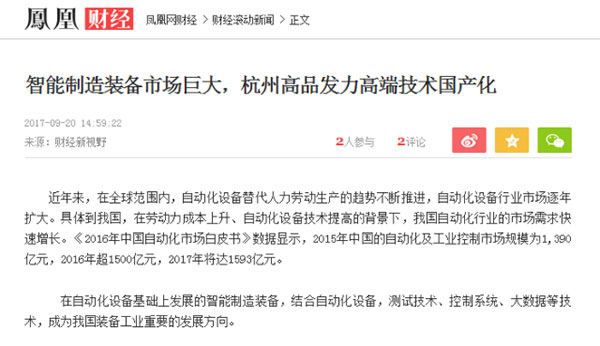 近日,鳳凰、新浪、網(wǎng)易、慧聰?shù)纫槐娭髁髅襟w,紛紛報(bào)道高品子公司——蘇州高騰正式開業(yè)。憑借著行業(yè)領(lǐng)先的綜合實(shí)力和近年來的快速發(fā)展,作為本土致力于高端非標(biāo)自動(dòng)化設(shè)備國(guó)產(chǎn)化的企業(yè),高品吸引了國(guó)內(nèi)媒體的關(guān)注。